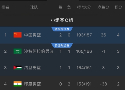 这样一来,中国男篮凭借两连胜高居C组第1,中国男篮将在最后一场对阵约旦。