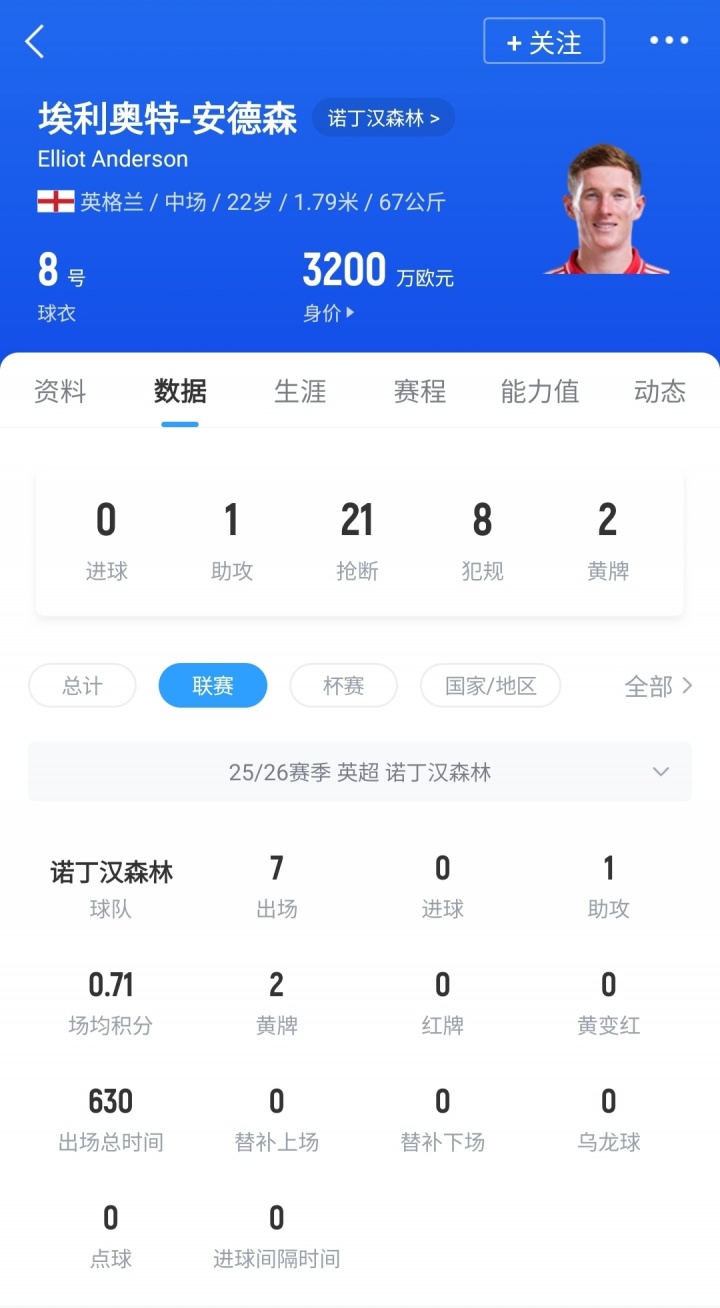 现年22岁的安德森于2024年以3500万镑从纽卡转会至诺丁汉森林,如今已成长为英超最耀眼的新星之一。